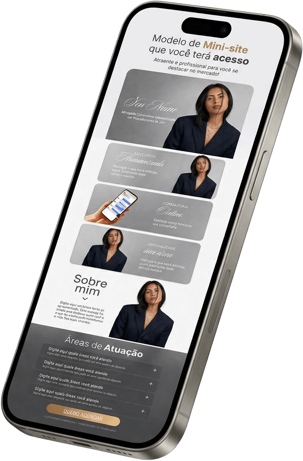 O que você precisava não era “contratar um programador”. Eram opções de designs prontos para você editar e publicar em minutos e transformar sua rotina jurídica com apresentação profissional e organizada, que impactam seus novos clientes.